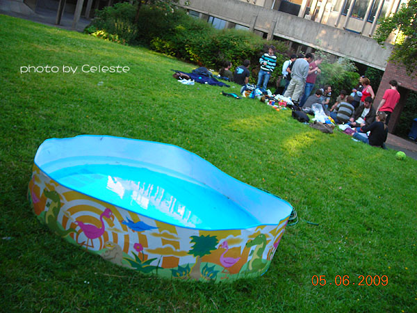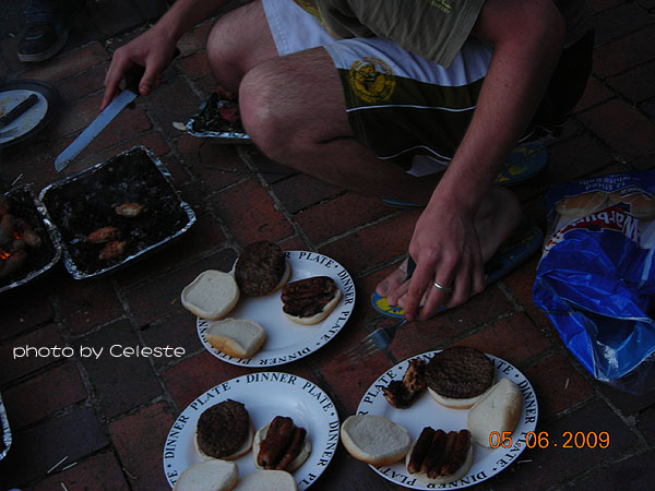 別看只有這一兩樣可以吃。我可是吃到很撐的!因為夾了麵包,又有起司,很容易就吃的飽飽的!除了吃,當然還有喝!英國夏天若是有出太陽,晚間九點才會天黑。這天我們差不多六點開始。到了整個結束都已經十點了。後來還有人續攤。但我還是因為身體不舒服,加上吃飽了喝足了,當然就想回寢室睡覺去了。何況隔天還有安排事情呢!所以這天下午就在烤肉香以及啤酒中歡樂的渡過囉!