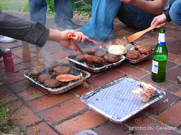 The cheap barbecue grill cost only a little over a pound. It was quite easy to use. Just light a match and light up the paper, and wait till the charcoal is burning. However, because it was cheap, the fire went off pretty quickly, too. We had to relight it so many times. And I wonder how many people chewed down half-done burger patties that afternoon...