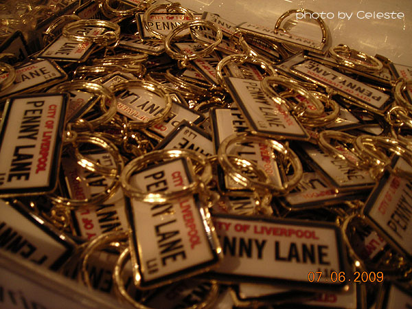 Key chain with the design of Penny Lane road sign.
