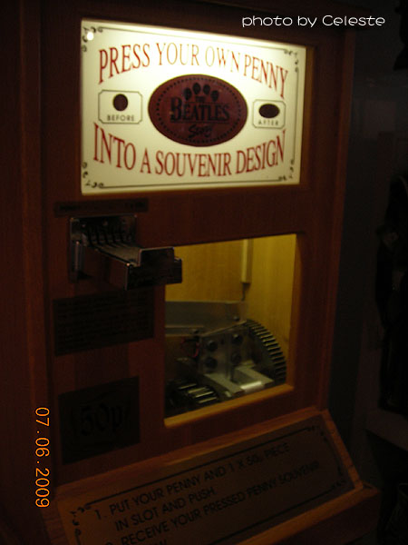 Feed a 1p coin, along with a 50p coin, and the machine will press the 1p coin into a little souvenir coin with the design of the Beatles Story logo. I wonder if I'm the only one that had seen this for the first time. Anyhow, I thought this little souvenir was even more meaningful than any other items sold in the store. I made two of these, one for myself, and another for my friend who is a big-time Beatles fanatic.