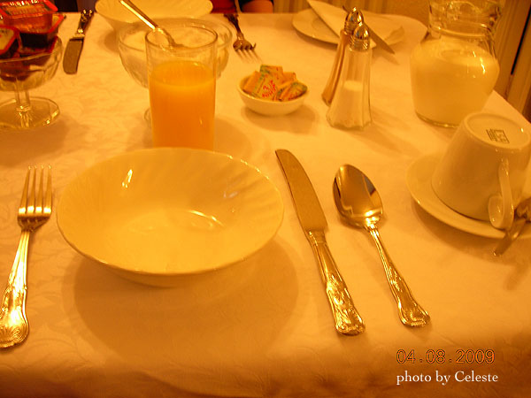 The next morning, after we got ready and went to the breakfast room, there was already a big crowd of people waiting for their breakfasts to be served. The breakfast was nothing special. It was just the usual English breakfast with milk and cereal. However, because of Pascal's excellent service, it made the meal more pleasant than it seemed. During breakfast, I met a Taiwanese couple who was also there for a visit. Watching them struggling to communicate with Pascal and the English couple sitting with them, I couldn't help but admire their courage to travel this far on their own.