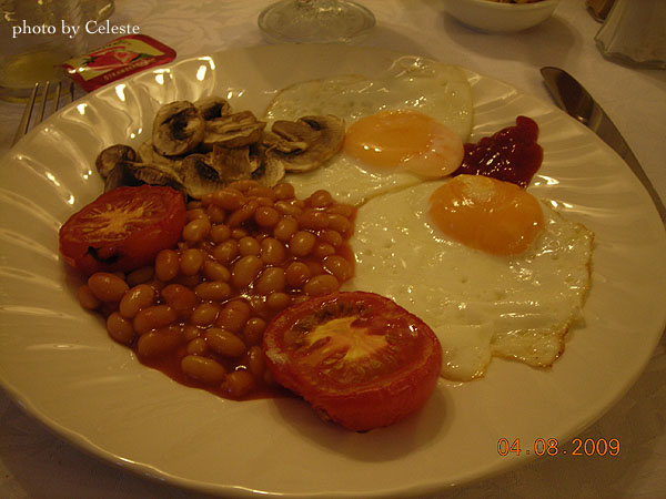 早餐結束之前,我和我同學還鬧了一場小插曲。個性開朗樂觀的法籍Pascal,不知道為何突然問我們兩個女生最喜歡的藝人是誰。我見我同學遲遲未有回應,就勉強說出了Christian Bale。結果沒想到造成了大轟動!不過他們當中卻沒有一個人知道他是誰捏!真是有點詭異。不過我印象最深刻的就是與我們供桌的一對英國夫妻對於Christian Bale是威爾斯人很不屑的反應。真是有趣。
