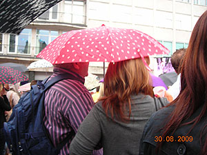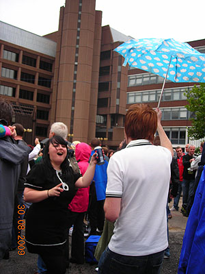 下雨了。但人們對音樂的熱忱仍然不滅。
