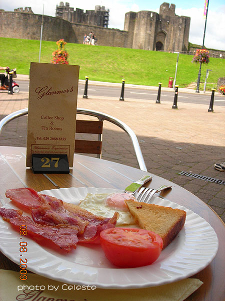 蛋、烤土司、培根以及烤番茄。其實還要有烤豆子。不過既然眼前就一座這麼壯觀的城堡,誰還會在乎少了豆子呢?