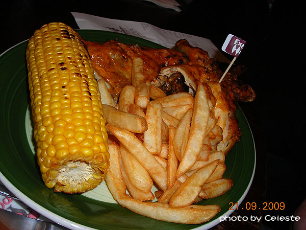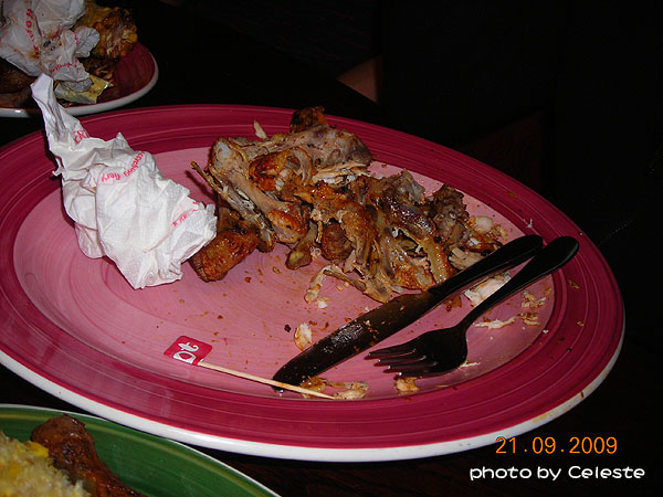 這就是最壯觀的全雞餐。(西方人有很多不吃的部位,而且也不像我們一樣習慣看到真的一整隻的雞,所以我想應該有很多朋友會覺得很訝異吧!?這就是文化差異囉)