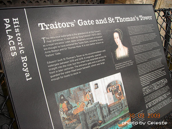 Other than the famous Anne Boleyn, famous prisoners also included Sir Thomas More, Sir Walter Raleigh, and even Queen Elizabeth I and Queen Mary as well! The gate you see in the pictures above, of course, got its name from the famous Thomas More incident. (Thomas More refused to support Henry VIII's divorce, thus was regarded a traitor).