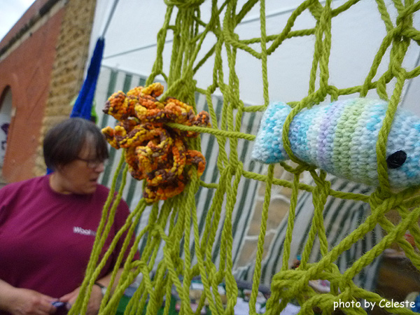 Fishnets made by different participants 許多參與者一起編織的漁網