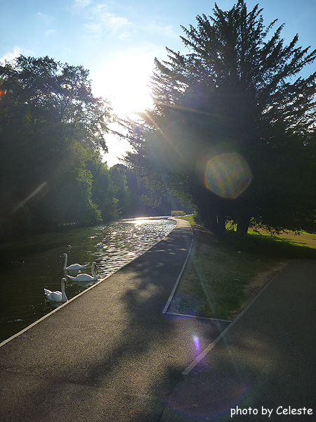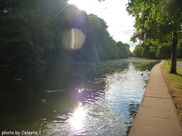This is a place in High Wycombe (pronounced 'wickem') called 'The Rye'. The simplicity of its landscape is the reason for its serene and tranquil atmosphere. There are ducks, swans, flowers, plants, trees, and cute people to top it all off.