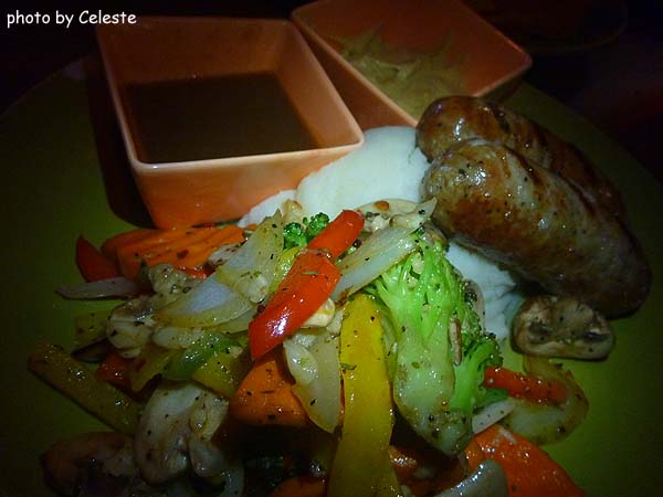 香腸的味道,我當然是沒吃啦(雖然只要遇到英國菜我就會有雙重標準 - 可能會破例地吃豬肉)不過我倒是有吃它底下的薯泥!實在太好吃啦!!那一坨的一大部分好像都是我吃掉的哩!