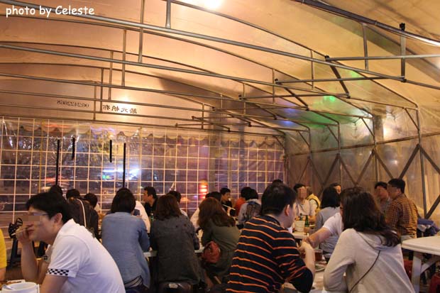 因為有點飄雨現象,所以店家還把棚子搭了起來。想必應該也只有台北以外的地方能這樣占用人行道吧。科科~