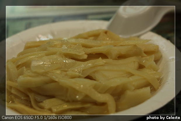 筍絲也是很好吃。雖然印象中好像也是沒吃過難吃的筍絲啦,不過味道是很不錯。這天天仙沒點主食,光是這樣吃也不會覺得太鹹。