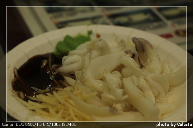 最後,看看自己花在這餐上的錢還算不多,就加點了這盤燙花枝。這道反倒讓我到現在都還記得,很鮮甜的口感。