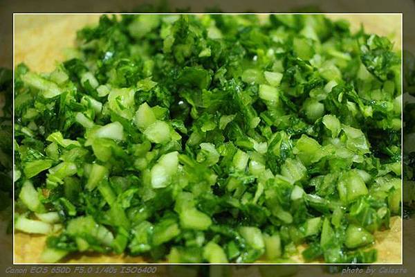 青江菜洗淨後要把它切碎。