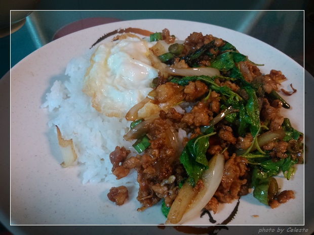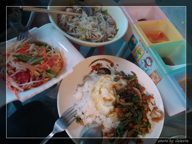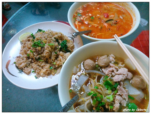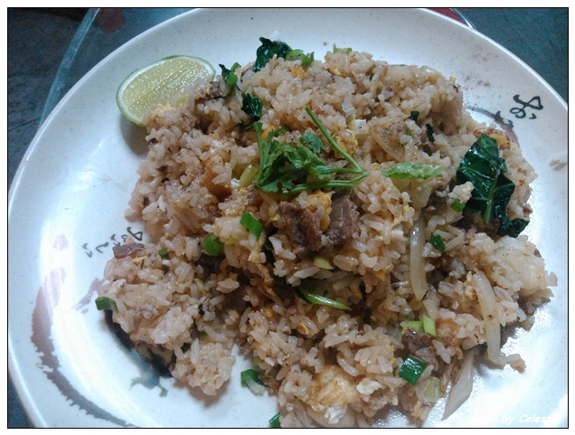 他們的炒飯我們吃過豬肉跟牛肉的。個人覺得他們豬肉處理得比較好。之後我也有請老公外帶回家食用過,結果一打開那個便當盒,我整個嚇到!因為整的便當盒滿到快裝不下了!!但價錢卻跟一般熱炒店的炒飯差不多。我開玩笑跟老公說:泰國人真的傻傻地啊!炒飯裝的那麼滿,他們還賺什麼呢?
