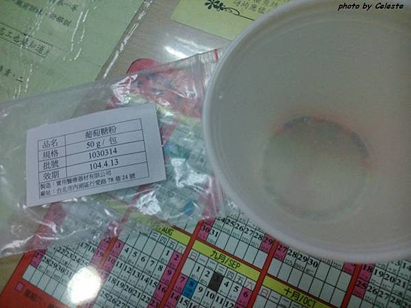 另外分享一下,這是每個孕婦24-28周時需要經歷的。是為了要檢測妊娠糖尿病。之前聽各位媽媽說這糖水有夠難喝。原本我也百思不解:不過就糖水怎麼會難喝呢!終於輪到我的時候,喝了一口覺得還不錯啊!你們都亂講!但是剩下的我喝不到一半便開始了解各位媽媽們為什麼都會這樣說了!真的好噁心啊!據說,如果第一次沒過不用太緊張,但是接下來卻是很麻煩,因為每隔一個小時就要喝這麼一杯,然後一共要喝四次!(我的天啊拜託祈禱我一次就過啊!!)