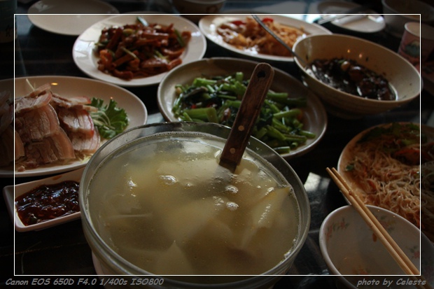 Since I've arrived at the second trimester of my pregnancy, I've been trying to avoid long trips. That means fewer trips to the parents and the in-laws' - both in Central Taiwan. This time at the parents', my dad happened to have an errand to run. He asked if we wanted to accompany him to Puli. Since we had nothing else planned, we might as well. The reward was this meal! I was a bit puzzled at first... I wasn't sure if there would be a nice place for lunch. Little did I know, my dad had gradually become quite well acquainted with Central Taiwan!