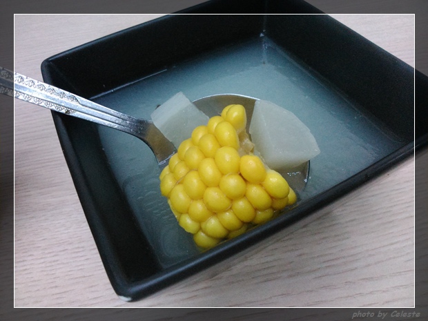 這湯味道很清淡。玉米也很甜。不過如果當時天氣熱些,天仙會把它放到涼一點再喝。