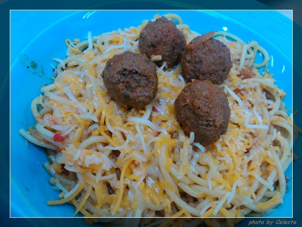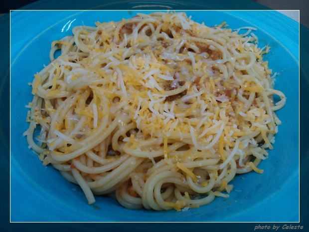 這麵條也不錯。量是剛剛好。也有撒起司,所以趁熱攪拌,還會有點牽絲~