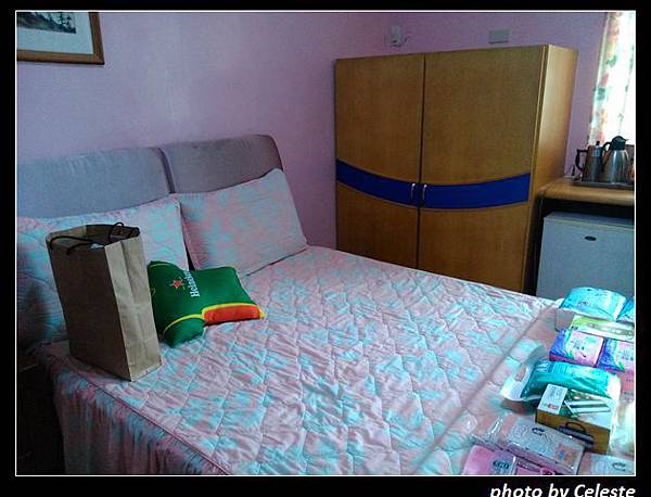 雙人床、衣櫃、冰箱、熱水壺等...(海尼根抱枕是自備的...)
