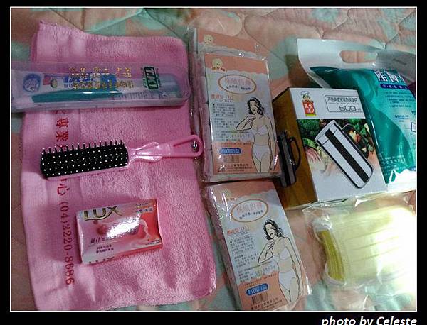 梳子、牙刷牙膏、肥皂、毛巾、免洗內褲、保溫杯、產褥墊、赴嬰兒室使用的口罩...