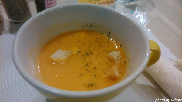 再來上場的是南瓜濃湯。此時開始訓練仙女漸漸接受外面的食物,所以有嘗試給她喝幾口。味道還滿不錯的。